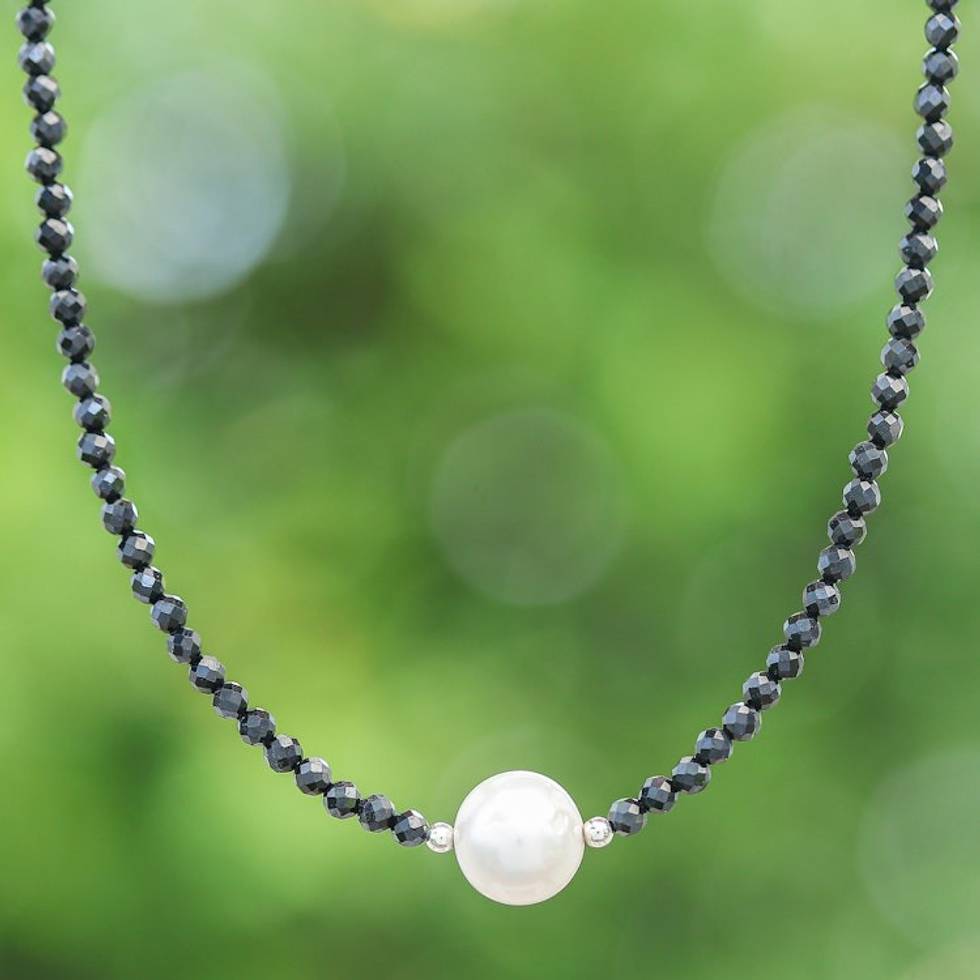 Thai Spinel Beaded Necklace with Cultured Pearl Pendant 'Black and White Magic' Item ID: 2671646731