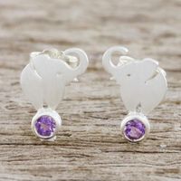 Thai Sterling Silver and Amethyst Elephant Button Earrings 'An Elephant's World' Item ID: 2671801211