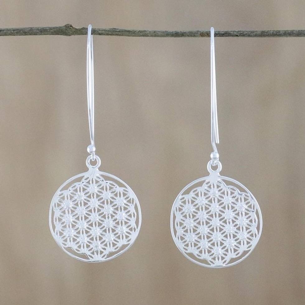 Thai Sterling Silver and Cubic Zirconia Dangle Earrings 'Fractal Circle' Item ID: 2671800744