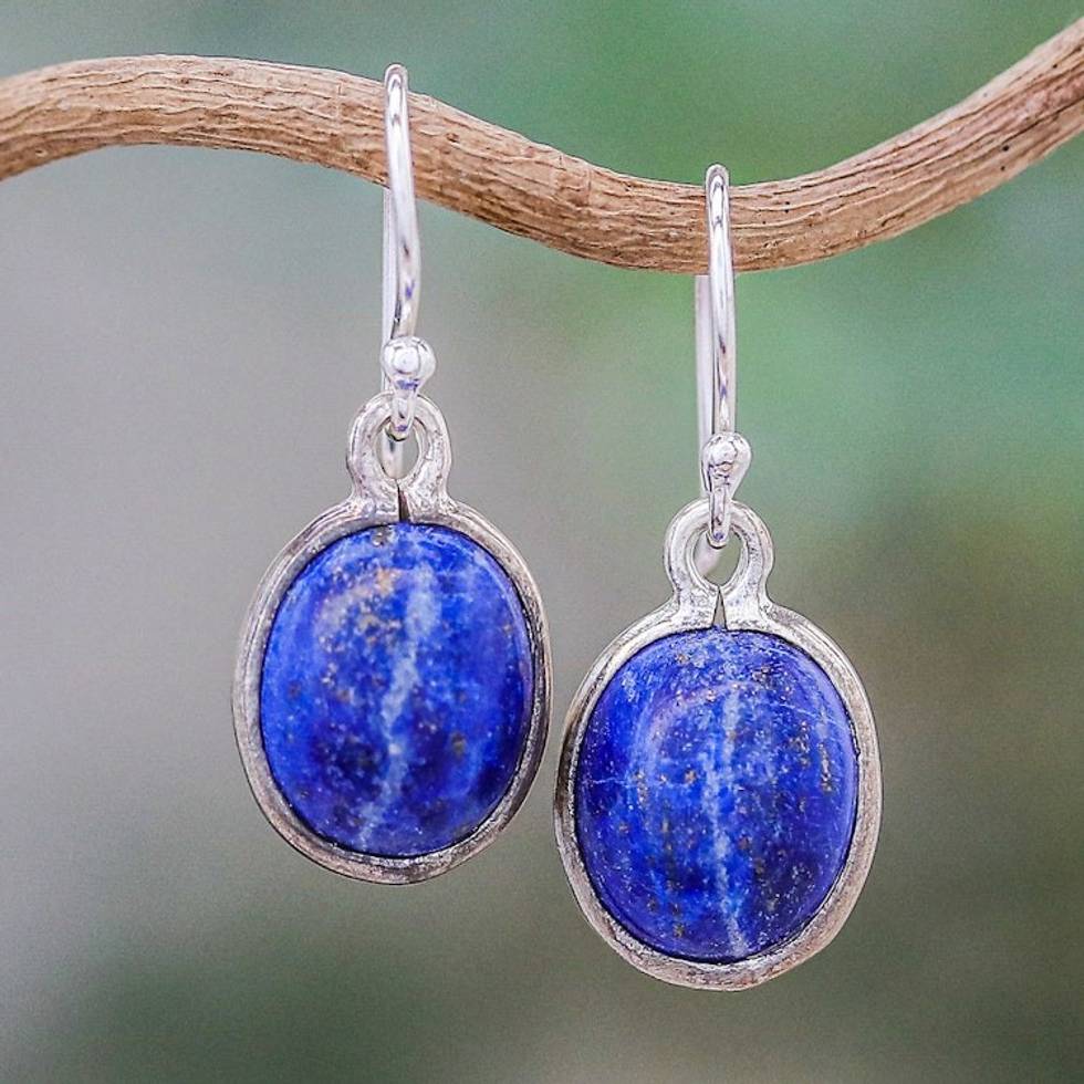 Thai Sterling Silver and Lapis Lazuli Earrings 'Majestic Blue' Item ID: 2671641154