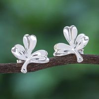 Thai Sterling Silver Button Earrings with Leaf Motif 'Planted' Item ID: 2671800362