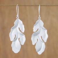 Thai Sterling Silver Dangle Earrings with Leaf Design 'Fronds' Item ID: 2671801398