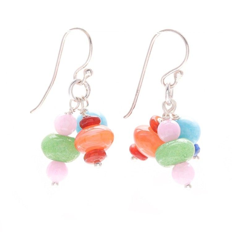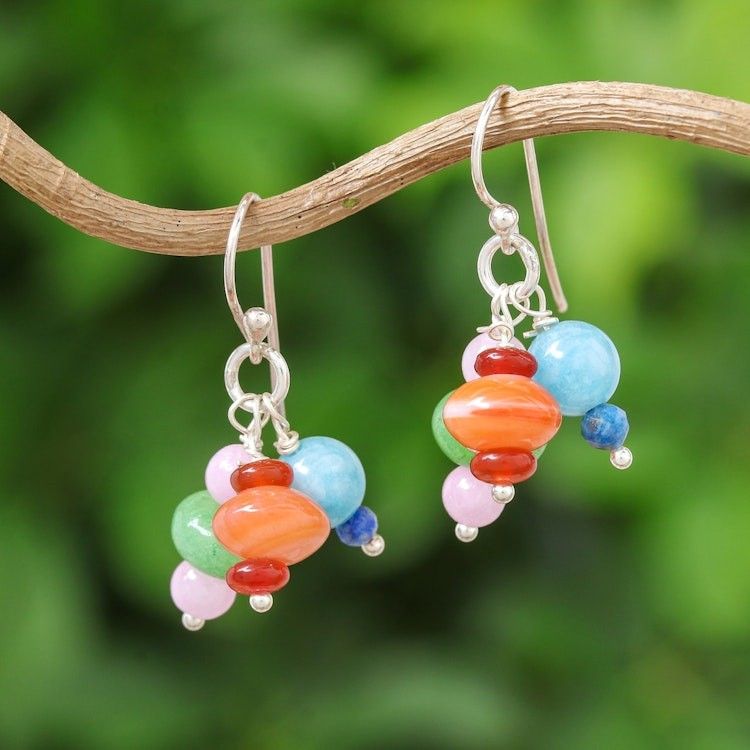 Thai Sterling Silver Multi Gemstone Beaded Dangle Earrings 'Fancy Stones' Item ID: 2671798116