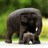 Thai Teak Wood Sculpture of Mother and Child Elephants 'Love and Care' Item ID: 2676656403