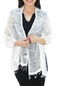 Thai White Cotton Scarf 'Breezy White' Item ID: 2669892518