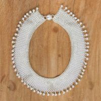 "This spectacular statement necklace by Piraporn of Thailand radiates splendor with a woven chain link design and spherical accents. Crafted by hand, the original design makes an unmistakable statement of elegance and style."