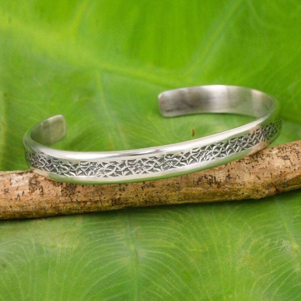 Thailand Sterling Silver Free Trade Cuff Bracelet 'Forest Footpaths' Item ID: 2671802168