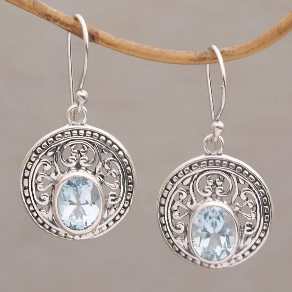 I love these earrings. They have a nice presence without being too large or heavy. The blue topazes are clear and colorful just like they look in the photo. The craftsmanship is perfect.