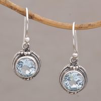 Three Carat Blue Topaz Dangle Earrings in Sterling Silver 'Cool Radiance' Item ID: 2669921017