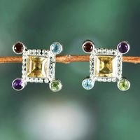Three-Carat Multi-Gemstone Sterling Silver Button Earrings 'Color Dimensions' Item ID: 2669944209