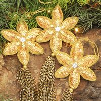 Three Gold Poinsettia Handcrafted Beaded Christmas Ornaments 'Golden Poinsettia' Item ID: 2669892308