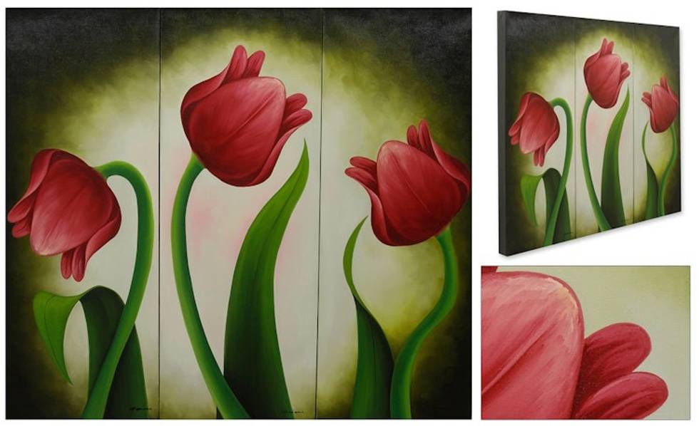 Three Paintings of Realistic Red Tulips Set 'Red Tulips' Item ID: 2671809059