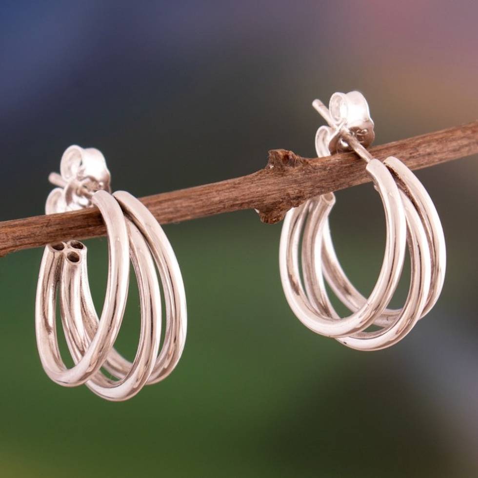 Three-Strand Polished Sterling Silver Half-Hoop Earrings 'Trendy Triad' Item ID: 2671698147