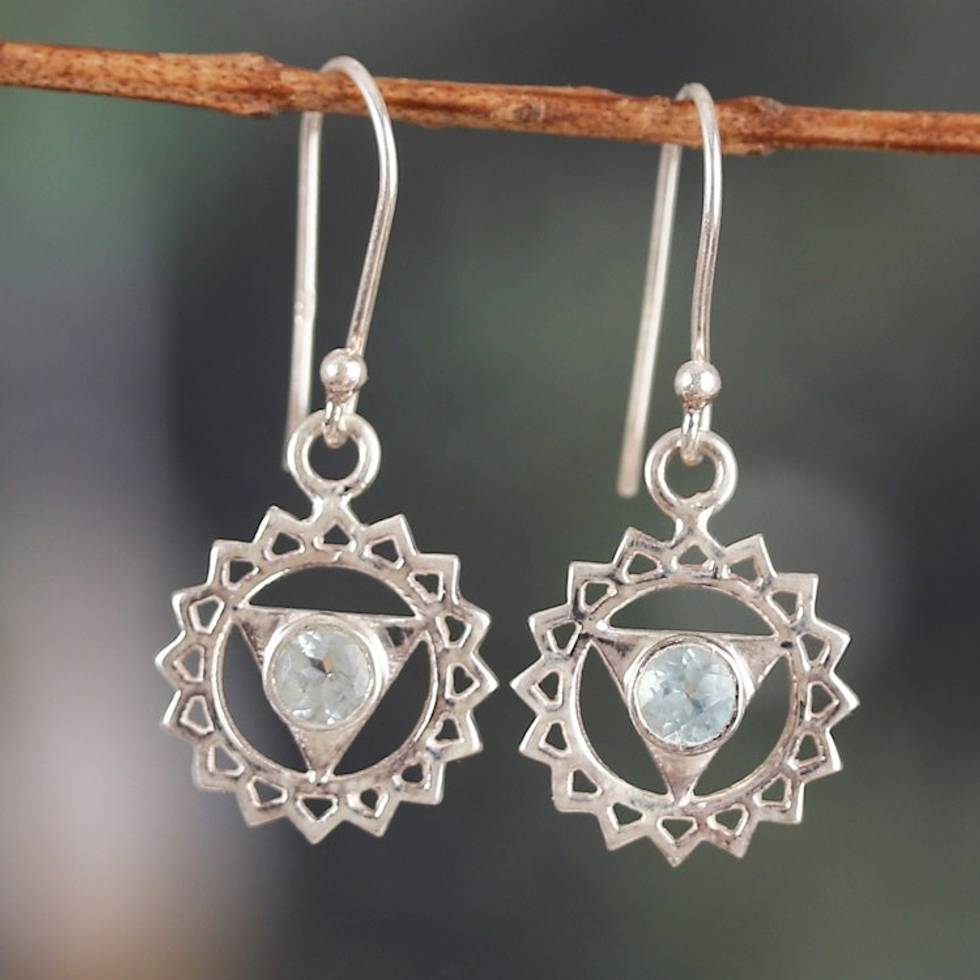 Throat Chakra-Shaped Faceted Blue Topaz Dangle Earrings 'Communication Chakra' Item ID: 2671782424
