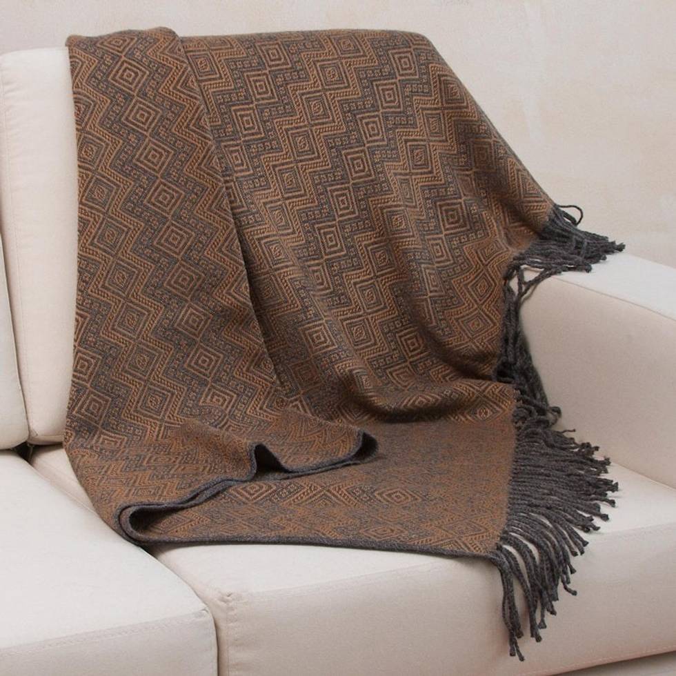 Throw Blanket with Diamond Motifs in Slate and Spice 'Diamond Embrace' Item ID: 2671820207