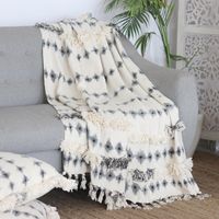 Tie-Dye Cotton Throw with Tufted Embroidery 'Cozy Elegance' Item ID: 2669925272