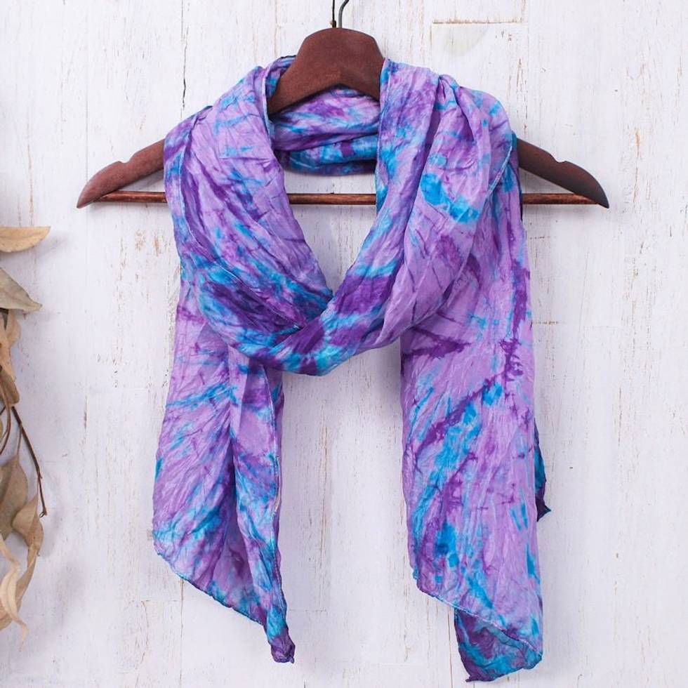 Tie-Dyed Iris and Teal Silk Scarf Handcrafted in Thailand 'Iris Emotions' Item ID: 2671797850