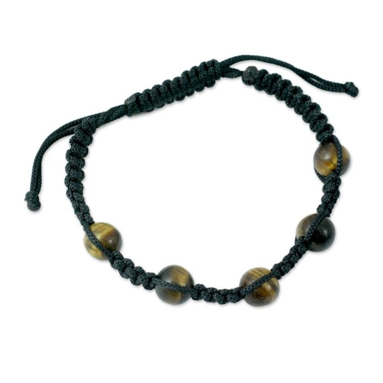 Tiger Eye Shambhala Bracelet with Black Cord Handmade India 'Oneness' Item ID: 2671794399