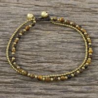 Tiger's Eye and Brass Beaded Anklet from Thailand 'Ringing Beauty' Item ID: 2671801341