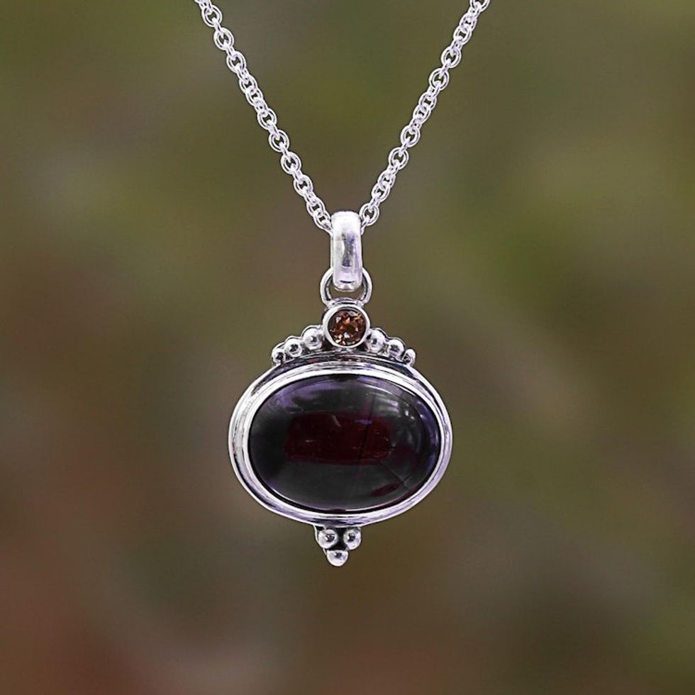 Tiger's Eye and Citrine Pendant Necklace from Bali 'Deep Oval' Item ID: 2671736434