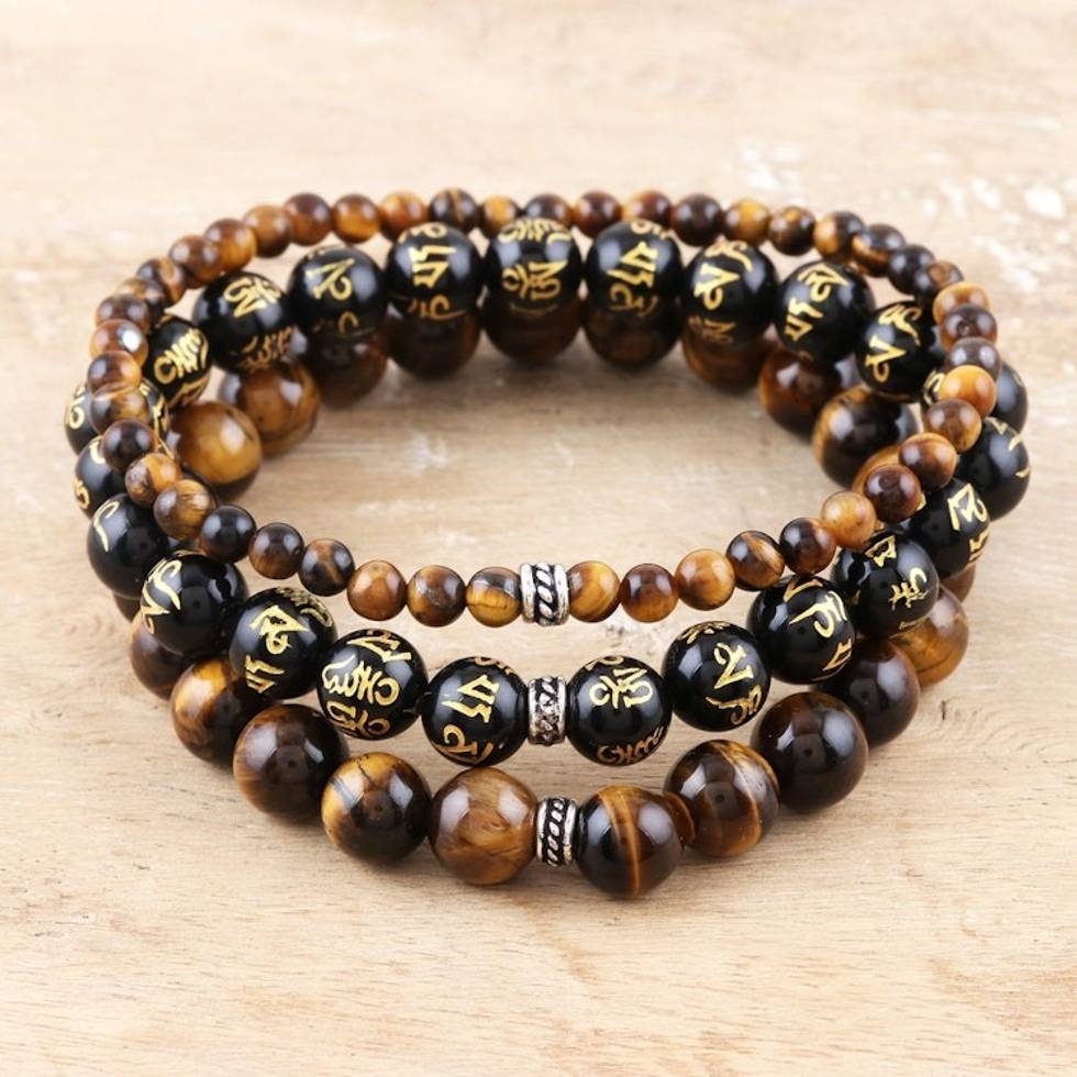 Tiger's Eye and Onyx Beaded Stretch Bracelet Set of 3 'Healing Trio' Item ID: 2671625482