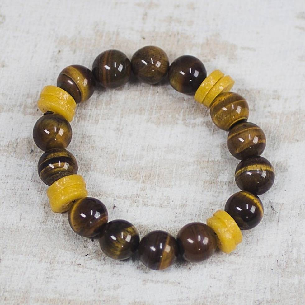 Tiger's Eye and Recycled Glass Beaded Stretch Bracelet 'Care for the Earth' Item ID: 2671805746