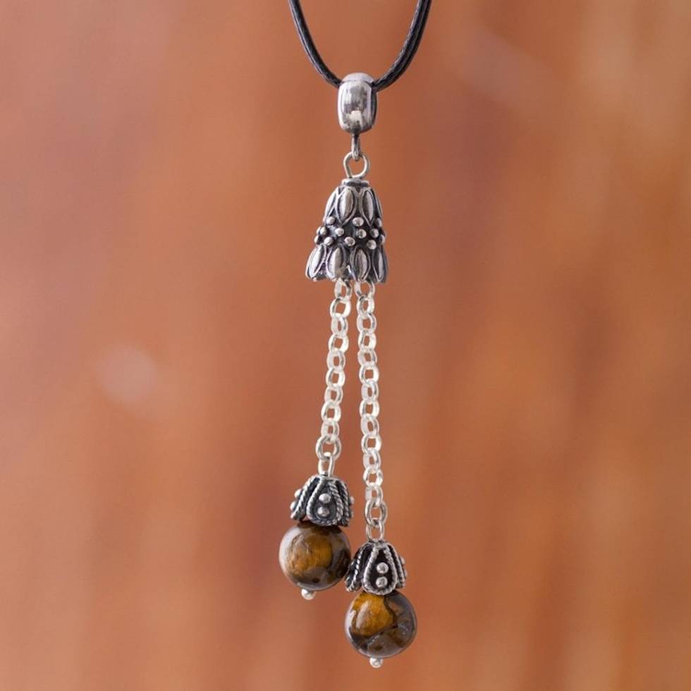 Tiger's Eye and Sterling Silver Pendant Necklace from Peru 'Berry Pendulums' Item ID: 2671691483