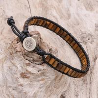 Tiger's Eye Beaded Wristband Bracelet with Leather 'Channels' Item ID: 2669926284