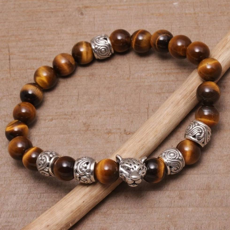 Tiger's Eye Leopard Beaded Stretch Bracelet from Bali 'Leopard Strength' Item ID: 2671734238