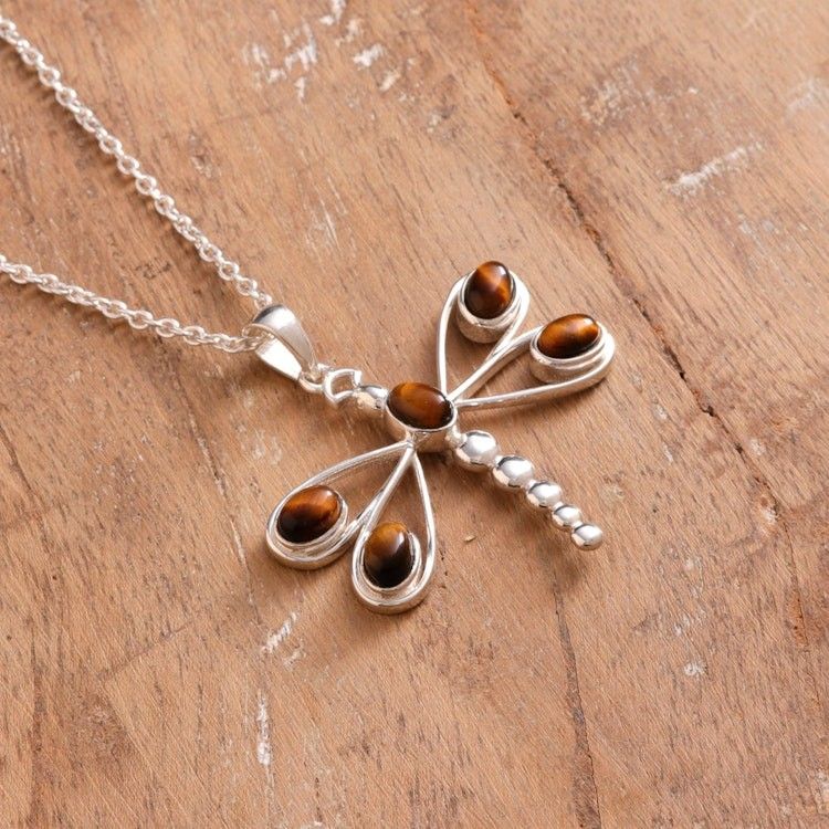 Tiger's Eye Sterling Silver Dragonfly Pendant Necklace 'Brown Dragonfly' Item ID: 2671623652