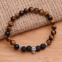 Tiger's Eye Stretch Beaded Bracelet with Sterling Skull 'Staring Skull in Brown' Item ID: 2671737706