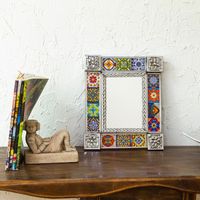 Tin and Ceramic Wall Mirror with Talavera Motifs Small 'Talavera Seasons' Item ID: 2669932419