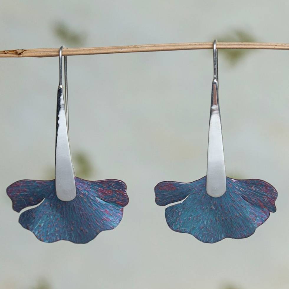 These earrings make a statement whenever I wear them. They have a personality of their own. They are beautifully crafted and never cease to amaze me. I wear them often, to work or on a night out. They are truly a work of art, representing the ginkgo leaf in extraordinary titanium hanging from silver wire. They are truly beautiful!