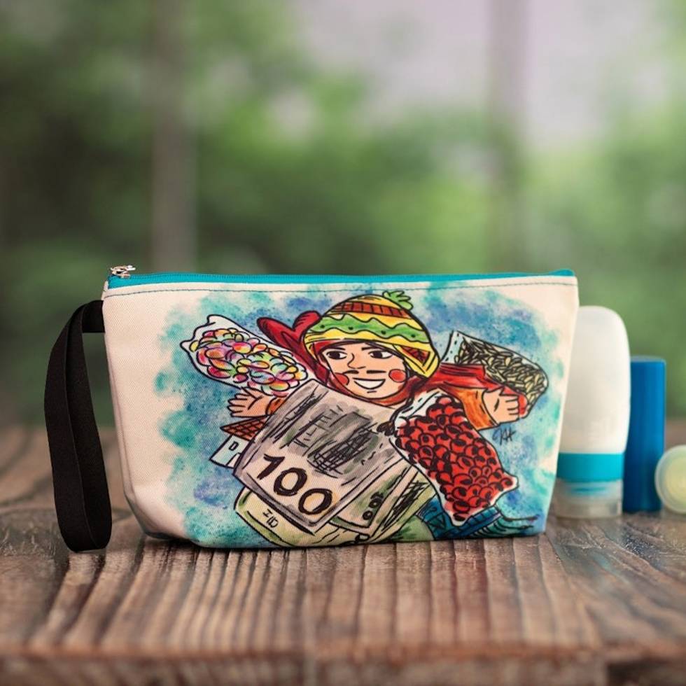 Toiletry Bag with Frugal Ekeko Print and Zippered Closure 'Frugal Celebration' Item ID: 2671697969