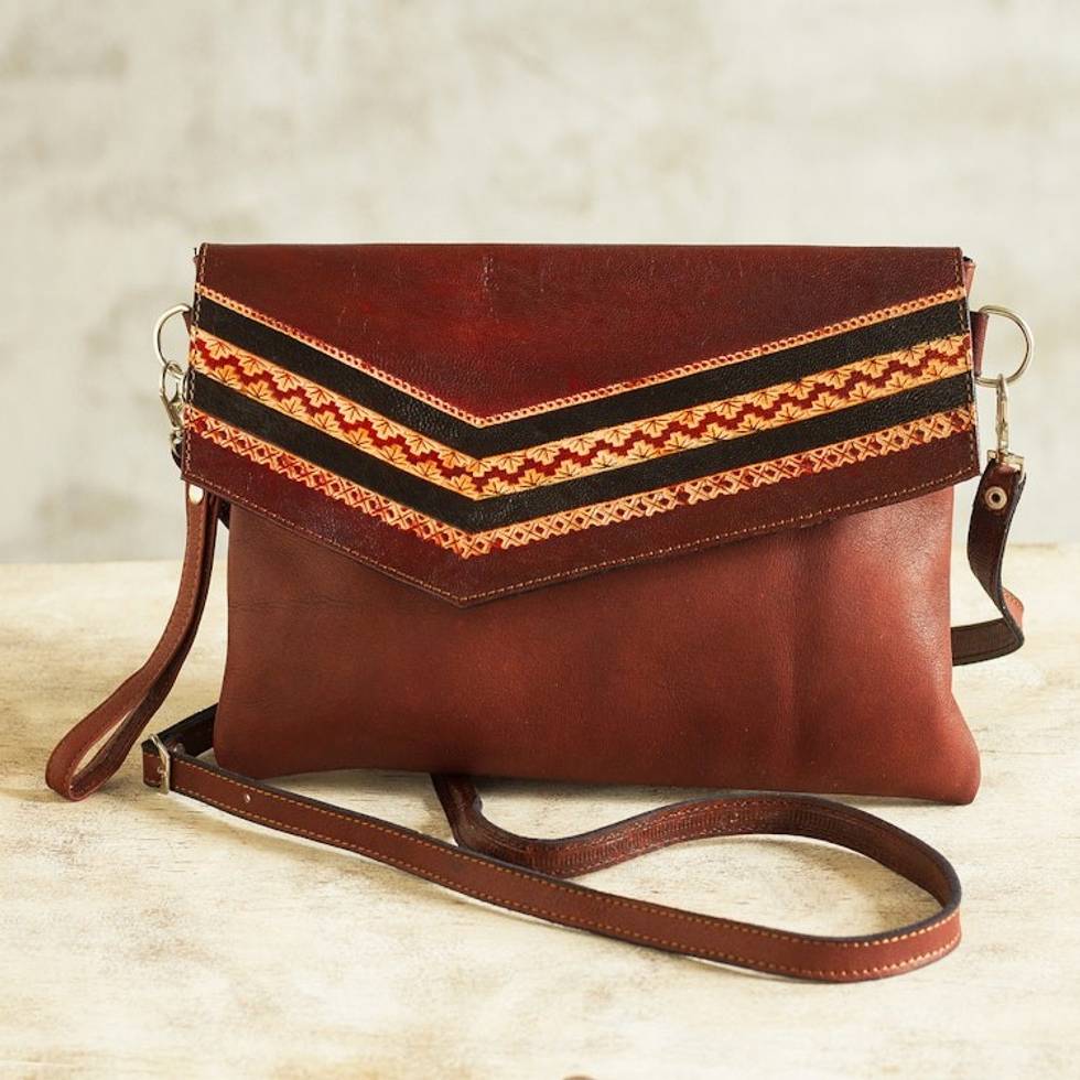 Tooled Leather Convertible Messenger Wristlet Bag from Peru 'Andean Summer' Item ID: 2671691091