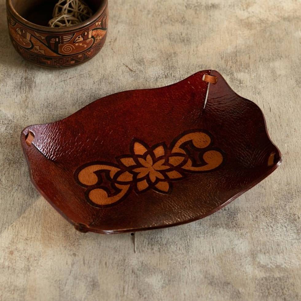 Tooled Leather Rectangular Brown Catchall Plate from Peru 'Redwood Gothic' Item ID: 2671695837