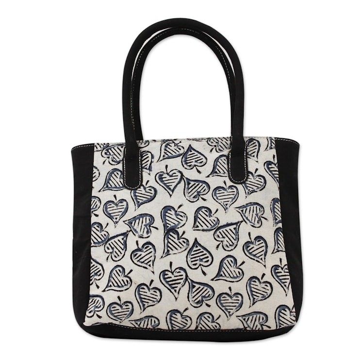 Tote Bag with Block Printed Leaves on Cotton from India 'Windswept' Item ID: 2671816764