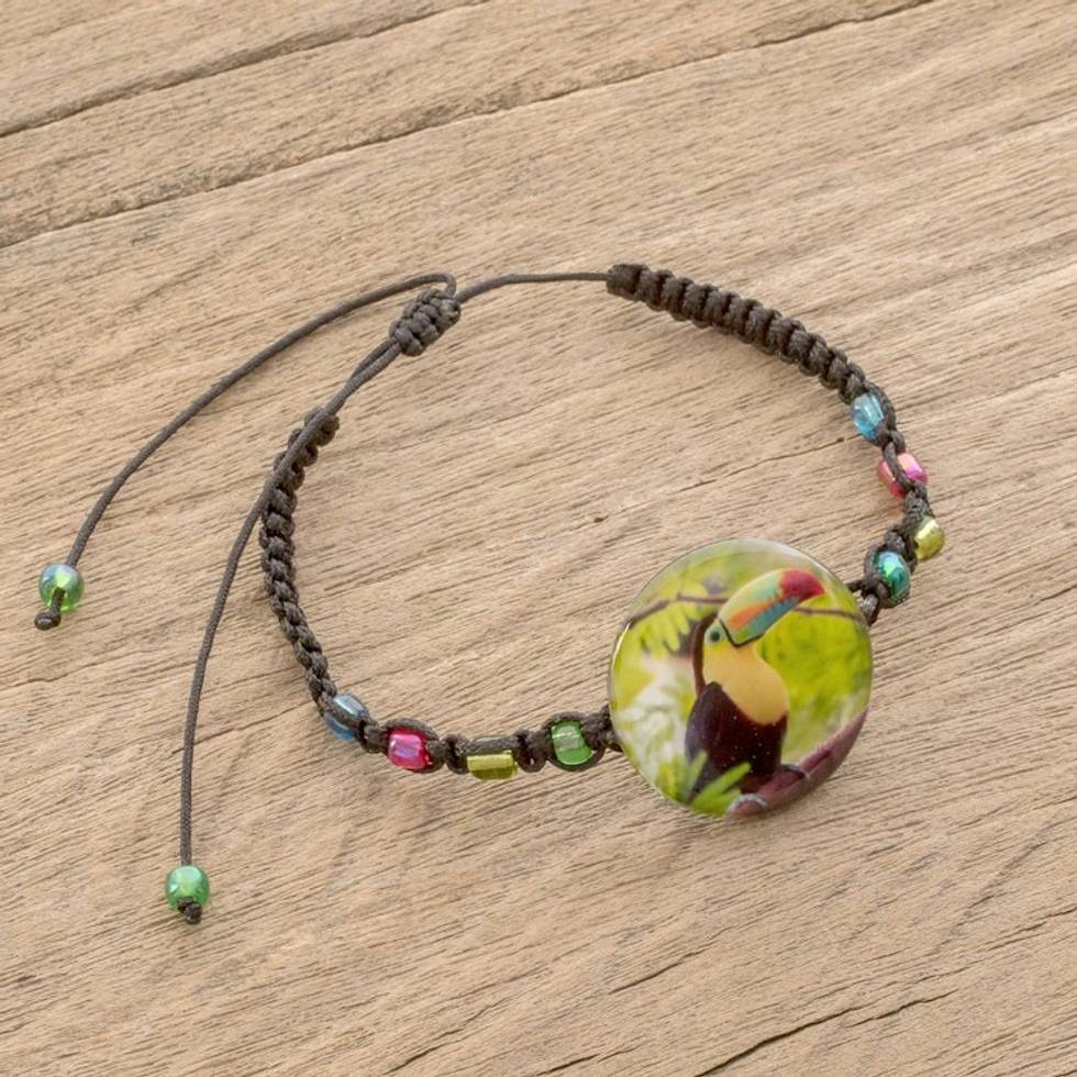 Toucan Glass Beaded Macrame Pendant Bracelet from Costa Rica 'Rainbow-Billed Toucan' Item ID: 2671777114