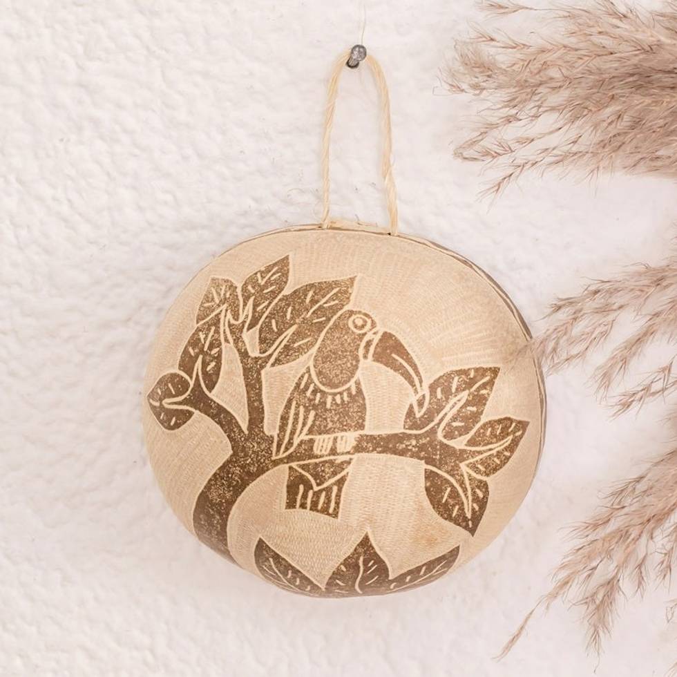 Toucan Wall Art Hand-Carved in Dried Calabash Gourd 'Toucan Magic' Item ID: 2671769280
