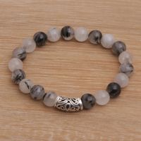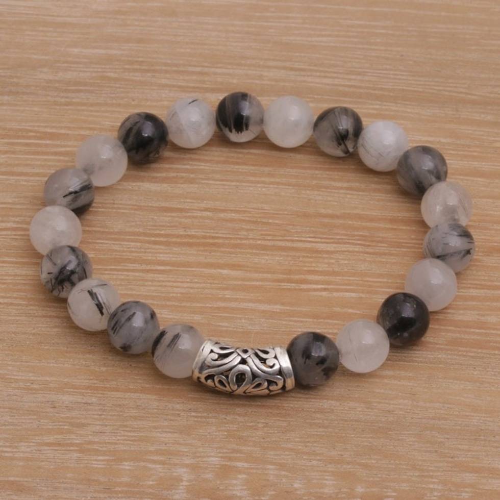Tourmalinated Quartz Beaded Stretch Bracelet 'Uluwatu Eclipse in Smoke' Item ID: 2669923014