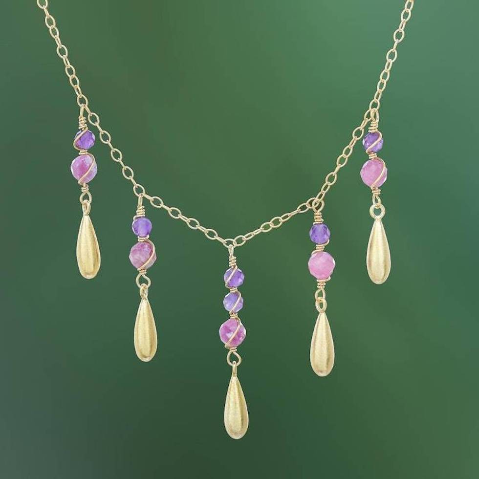 Tourmaline and Amethyst Pendant Waterfall Necklace 'Aria' Item ID: 2676653363