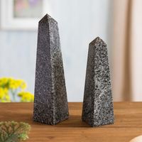 Tourmaline and Quartz Obelisk Gemstone Figurines Pair 'Speckled Obelisks' Item ID: 2671691607