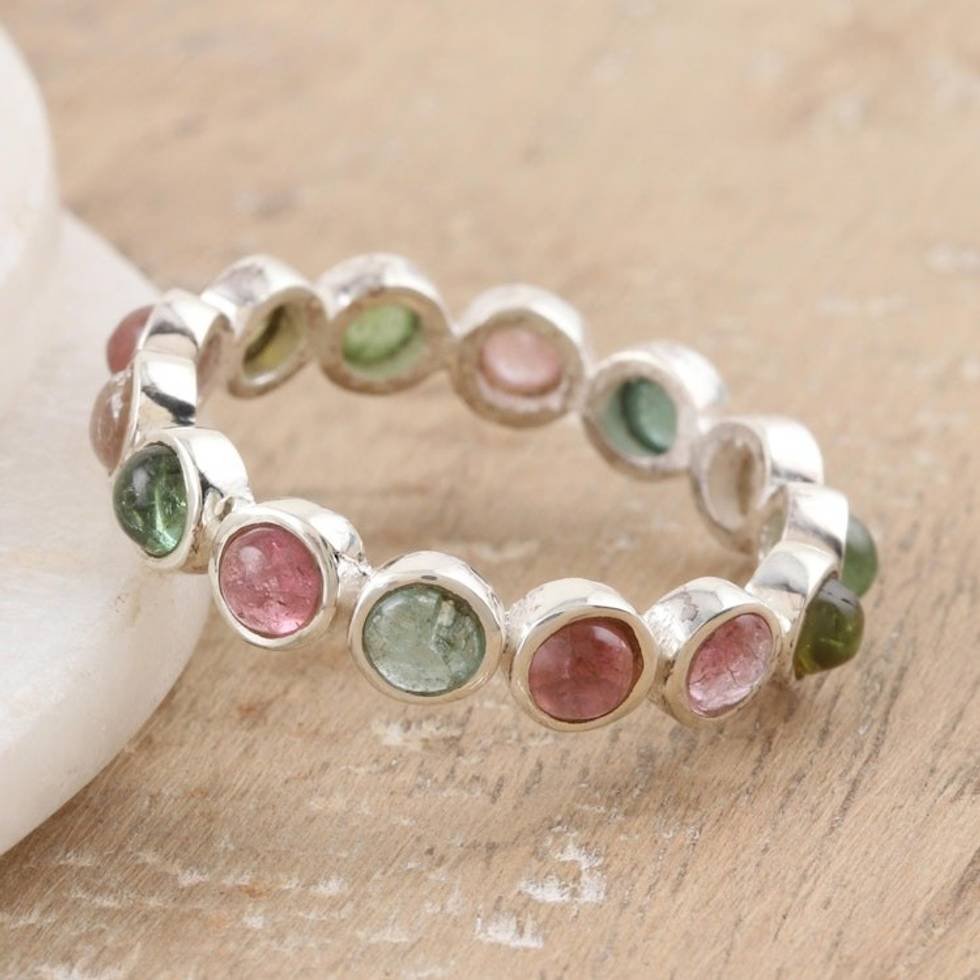 Tourmaline Band Ring Crafted from Sterling Silver in India 'Treasures' Item ID: 2671669381