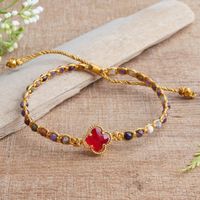 Tourmaline Beaded Bracelet with Red Flower Pendant from Bali 'Flower of Creativity' Item ID: 2671765491