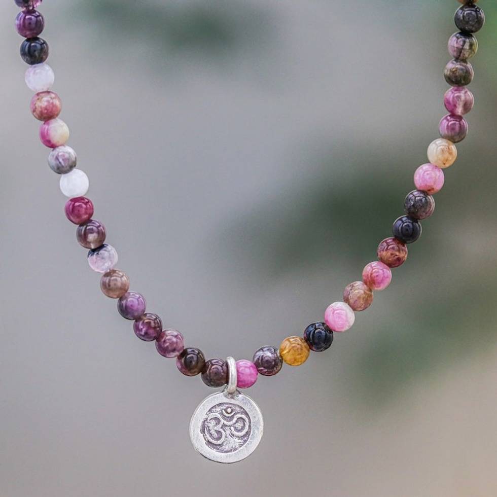 Tourmaline Om Beaded Pendant Necklace from Thailand 'Beautiful Om' Item ID: 2669925818
