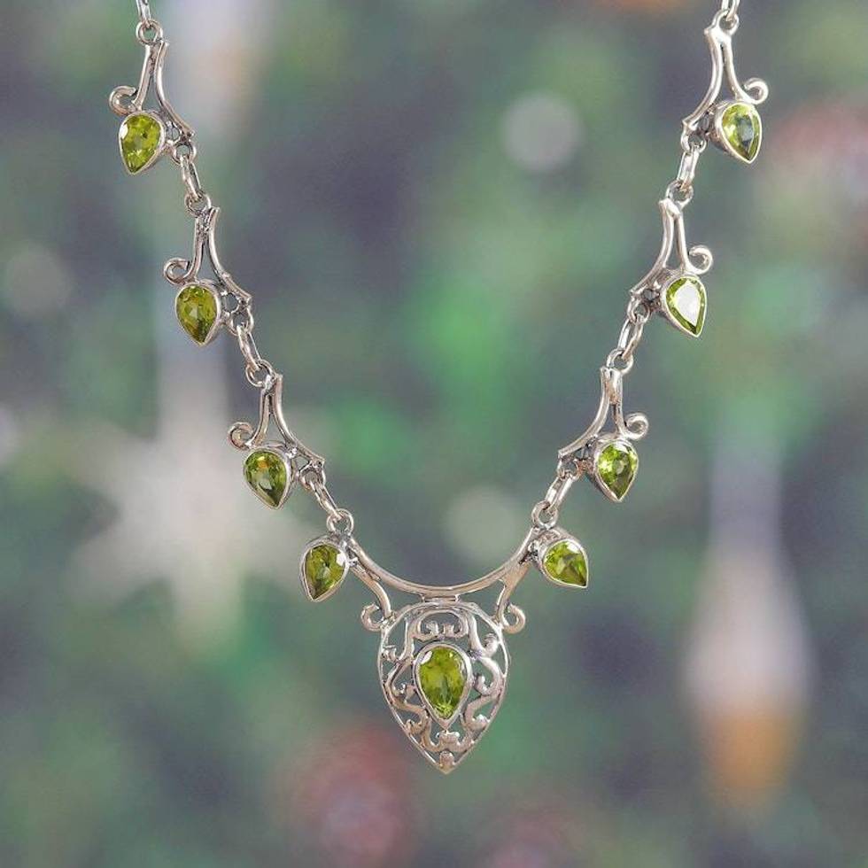 Traditional 11-Carat Natural Pear Peridot Link Necklace 'Mughal Luck' Item ID: 2676665323