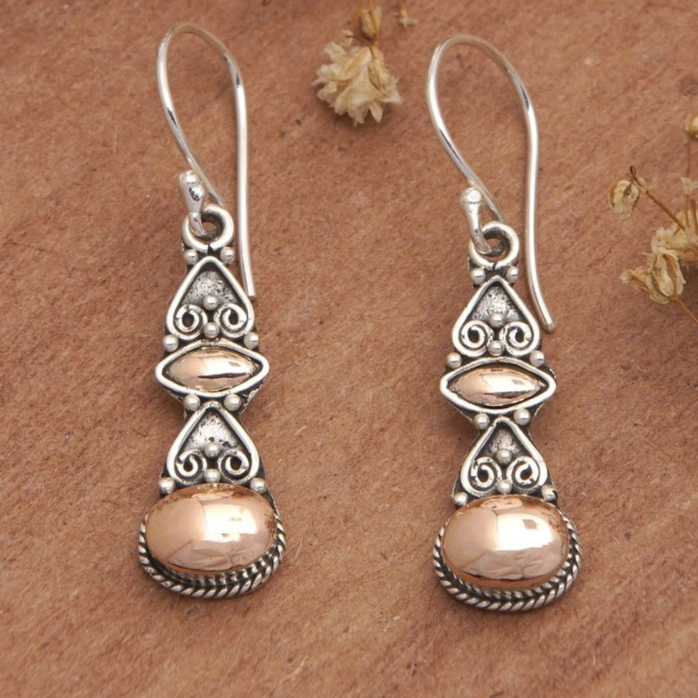 Traditional 18k Gold-Accented Dangle Earrings from Bali 'Golden Glare' Item ID: 2671764797