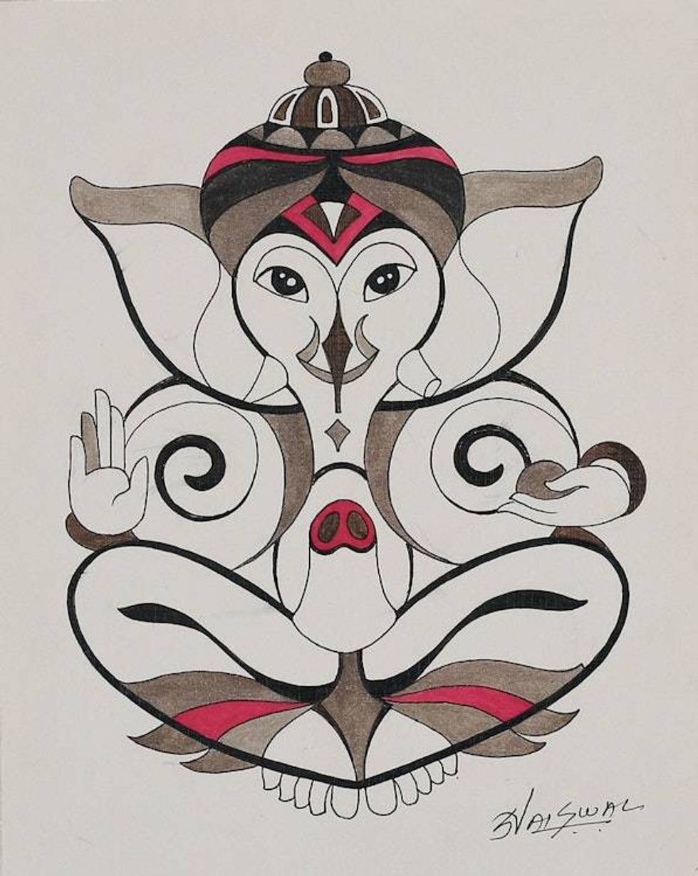 "Besides art, I was also very much interested in photography and took a six-month course in that field upon completion of my 12th standard. After that, I did a four-year diploma course in painting at the Bharatiya Vidya Bhavan Institute of Art and Culture. I was so fascinated by the beauty of art that I couldn't deny the fact that I was in love with it. As I learned every stroke, each line, I was more and more attracted to the world of art. In 1993, after my four-year painting course, I continued this journey and received a BA degree in fine arts. Here I came in contact with a variety of art media and enjoyed every bit of it. I don't want to be bound by any particular theme or style and have tried my hand at almost everything connected with art, like wood sculpting, clay molding, metal, fiberglass, wrought iron, ceramics, etc. I did quite a bit of work in wrought iron and metal sculpting and got a good response. I love working on Ganesha themes and have done quite a lot of pieces on this deity.