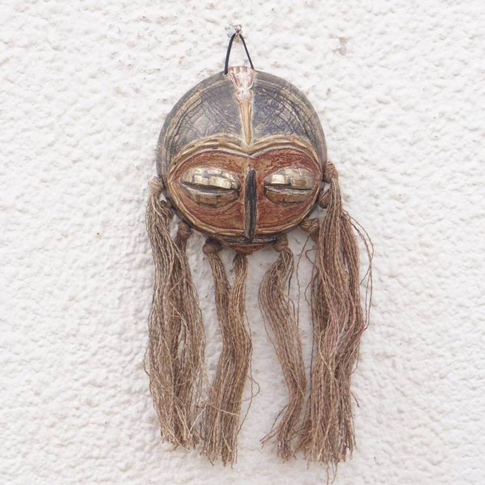 Traditional African Calabash Mask with Raffia Accents 'Ghana's Soul' Item ID: 2671805241