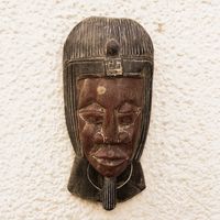 Traditional African Sese Wood Mask in Brown and Black Hues 'King Head' Item ID: 2671805233